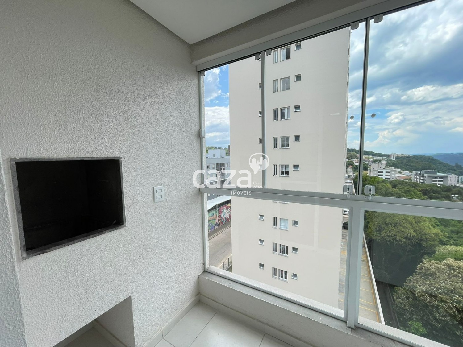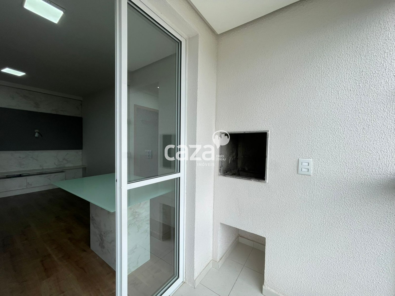 - Sacada fechada em vidro com churrasqueira;